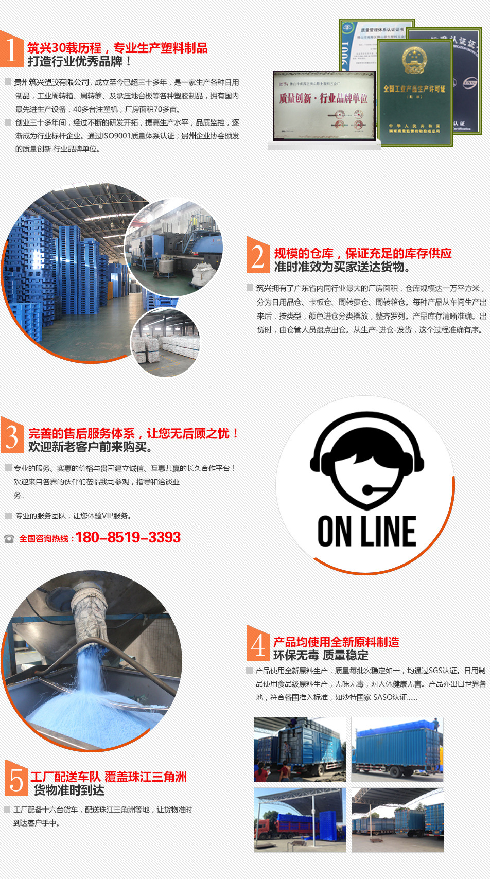 - 防靜電周轉(zhuǎn)箱聚乙烯(PP)為基材,加入摻合物,此摻合物可傳導電流和具有較強的機械性能,用這種復合材料經(jīng)傳統(tǒng)的注射成型制成的周轉(zhuǎn)箱安全實用。并且廣泛應用于機械、汽車、家電、輕工等行業(yè),其以物流容器的標準化、單元化、專業(yè)化為基礎(chǔ),在物流行業(yè)中起到了舉足輕重的作用。